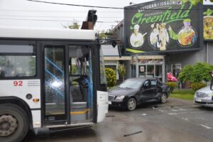 Zrenjanin- Na uglu Baranjske i Šumadijske ulice na Zelenom polju danas oko 11.40 časova došlo je do saobraćajne nezgode u kojoj su učestvovali Gradski autobus koji saobraća na liniji broj 10A i putničko vozilo marke Mercedes.
