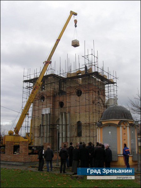 Ranije ove godine, maja meseca, Episkop Nikanor osveštao je krst koji je postavljen na centralnu kupolu hrama. Radovi na izgradnji nisu prekidani tokom godine, pa su u međuvremenu omalterisani zidovi u unutrašnjosti hrama, ozidan deo ograde oko porte i nastavljena gradnja tornjeva, do čijeg je završetka preostalo još 5,60 metara.