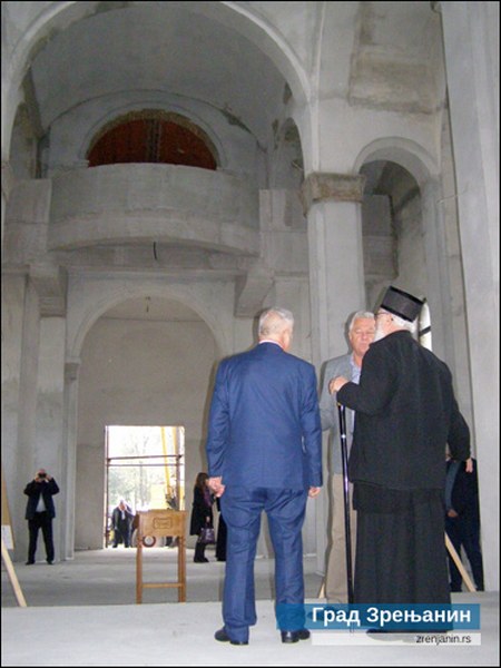Njegovo preosveštenstvo Episkop banatski Nikanor, vršilac dužnosti direktora Uprave za saradnju sa crkvama i verskim zajednicama Vlade Republike Srbije Mileta Radojević i gradonačelnik Zrenjanina Čedomir Janjić sa saradnicima posetili su danas u Lazarevu hram Svete velikomučenice Marine – Ognjene Marije u izgradnji. U budućem monumentalnom hramu, jednom od najvećih i najlepših u Banatu, u toku su radovi na izgradnji dva tornja – zvonika, na čijim će vrhovima biti kupole koje će dosegnuti do visine od 17 metara.