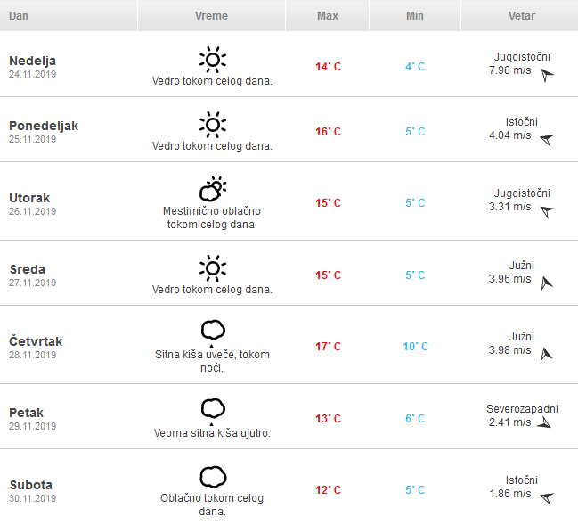 Pogledajte detaljnu vremensku prognozu za narednih sedam dana: