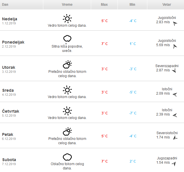 Pogledajte detaljnu vremensku prognozu za narednih sedam dana: