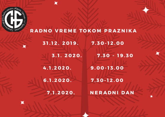 Prodavnica pogrebne opreme, u Svetosavskoj ulici br. 25, radiće 01.01. i 02.01.2020. godine, kao i za Božić 07.01.2020. godine od 08,00 do 16,00 časova. Sahrane će se obavljati samo 02.01.2020. godine, dok se 01.01. i 07.01.2020. godine, sahrane neće obavljati. Sve informacije građani mogu dobiti i na telefone 066/866-03-00 i 023/561-473 (do 16 časova). Posle 16,00 časova građani mogu da se jave na dežurni telefon broj: 023/522-350, kao i na gore navedeni broj 066/866-03-00 u periodu od 0-24 časa.