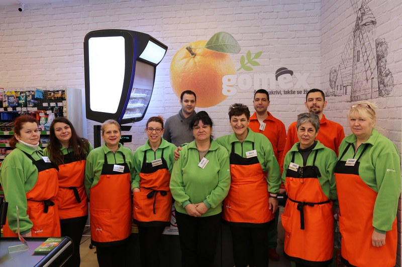 Savremeno opremljena odeljenja voća i povrća, mesare, kutak za zdravu hranu – uz prijatno osvetljenje i moderan enterijer –uređeni su po GOMEX standardima predviđenim za mini-markete. O kvalitetu usluge brine se osmoro novozaposlenih.