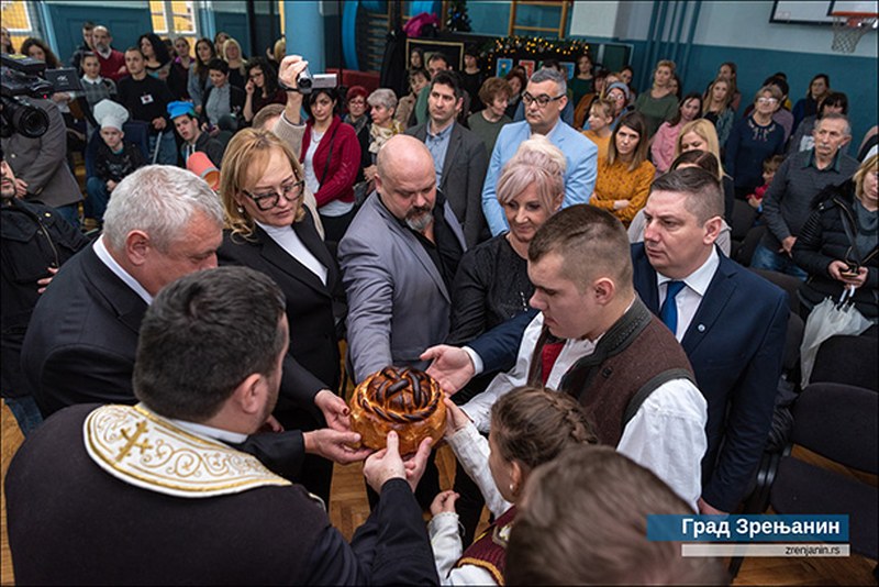 Na svečanosti koju su pripremili učenici i zaposleni u OSŠ “9. maj” dosadašnji kum slave – pomoćnik gradonačelnika Dragan Ćapin – predao je kumstvo za narednu godinu gradonačelniku Zrenjanina Čedomiru Janjiću.