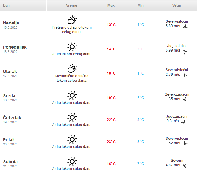 Pogledajte detaljnu vremensku prognozu za narednih sedam dana: