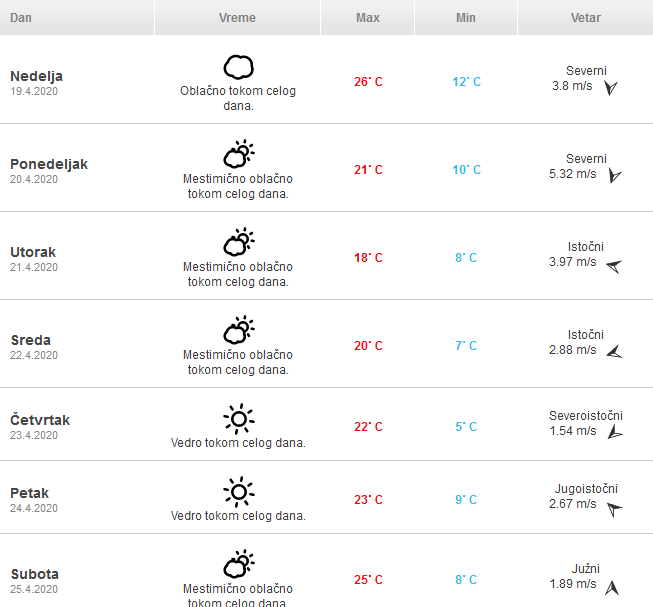 Pogledajte detaljnu vremensku prognozu za narednih sedam dana: