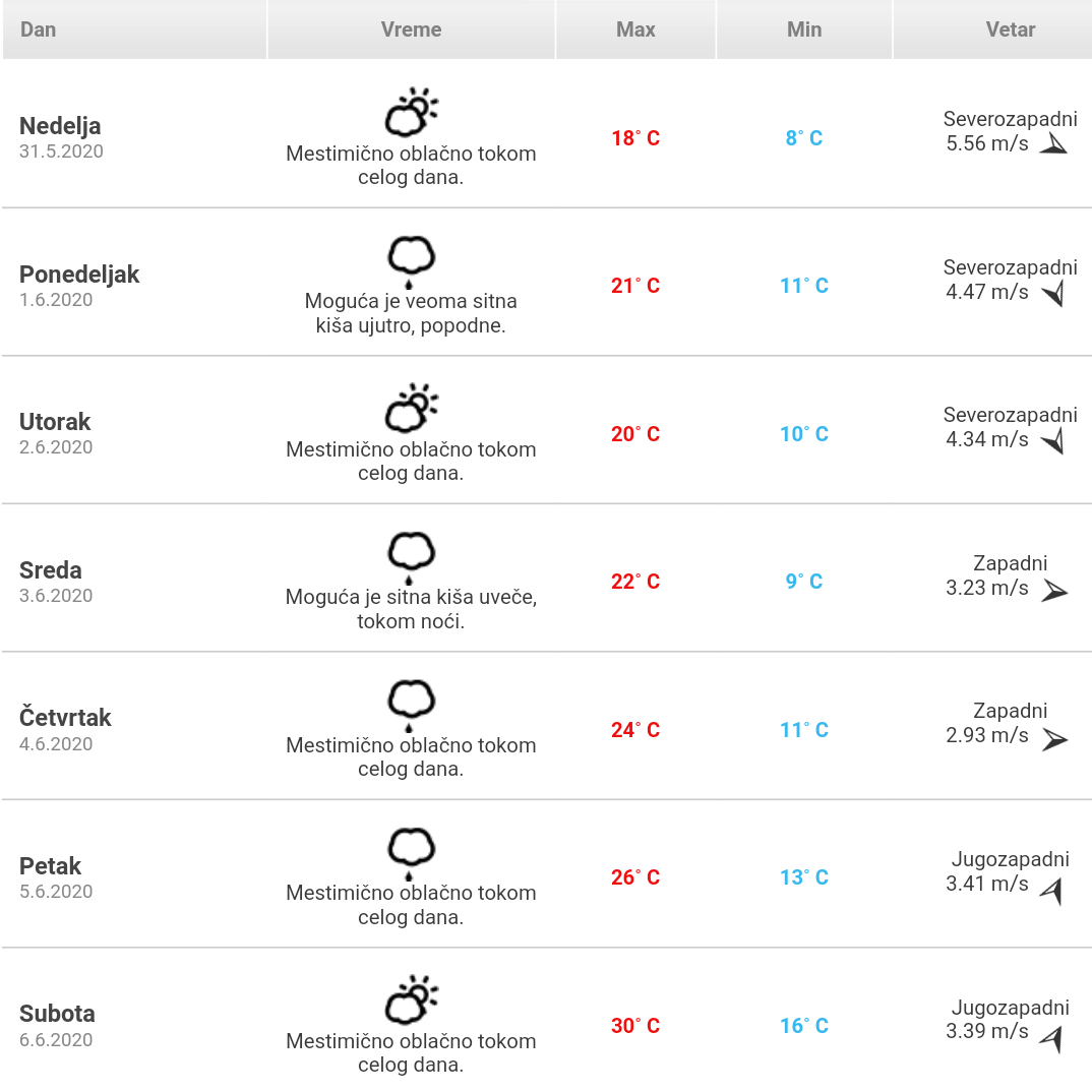 Pogledajte detaljnu vremensku prognozu za narednih 7 dana: