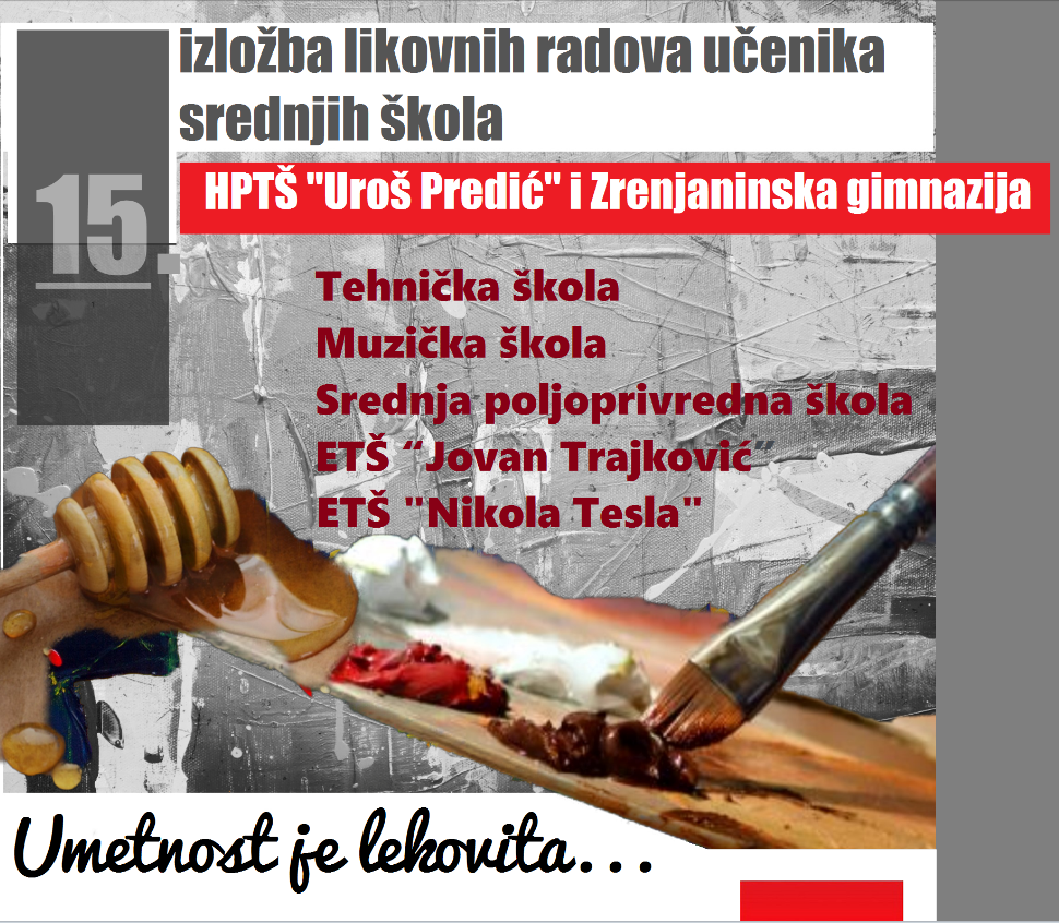 Zrenjanin- U četvrtak, 11. juna u izložbenom salonu Kulturnog centra Zrenjanina biće otvarena 15. Završna izložba učenika srednjih škola. Grupa izloženih radova čini celinu koja se otvara pod sloganom – „Umetnost je lekovita“. Na izložbi se predstavljaju radovi učenika: HPTŠ „UrošPredić“, Zrenjaninske gimnazije, Muzičke škole „Josif Marinković“, Srednje poljoprivredne škole, ETŠ „Jovan Trajković“ i Tehničke škole. Izložbom se afirmiše likovno stvaralaštvo učenika srednjih škola. Na izložbi učestvuje oko 50 učenika-autora sa preko 120 radova koji su urađeni u različitim likovnim i umetničkim tehnikama, kao što su: olovka, ugljen, tuš, akvarel, pastel, tempera i fotografija.