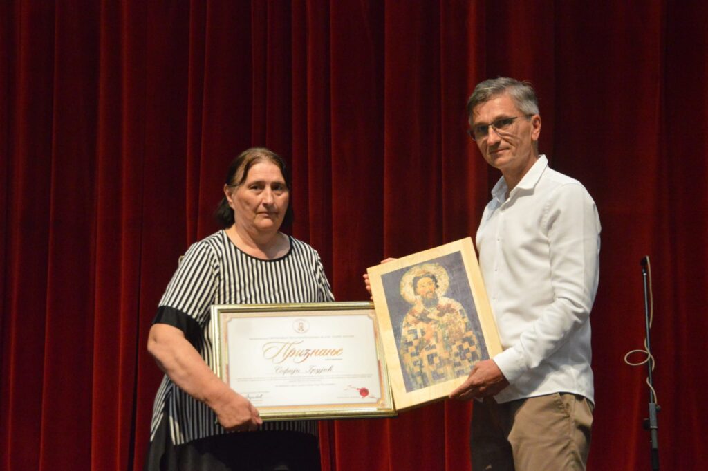 Sofija Grujić, dobitnica priznanja za prosvetnog radnika godine pored prigodne plakete dobila je i novčanu nagradu u iznosu od 60.000 rsd i osveštanu ikonu Svetog Save.