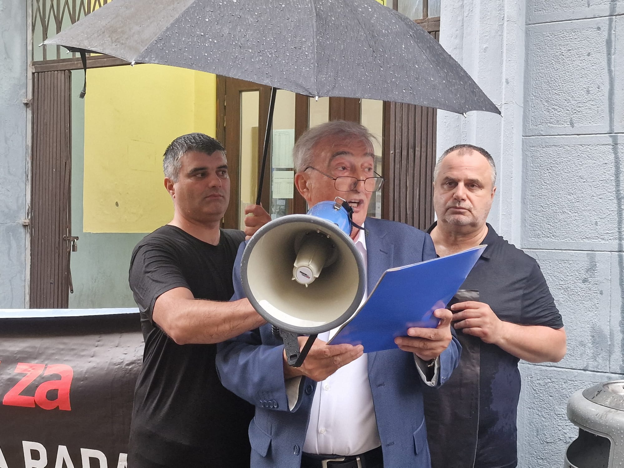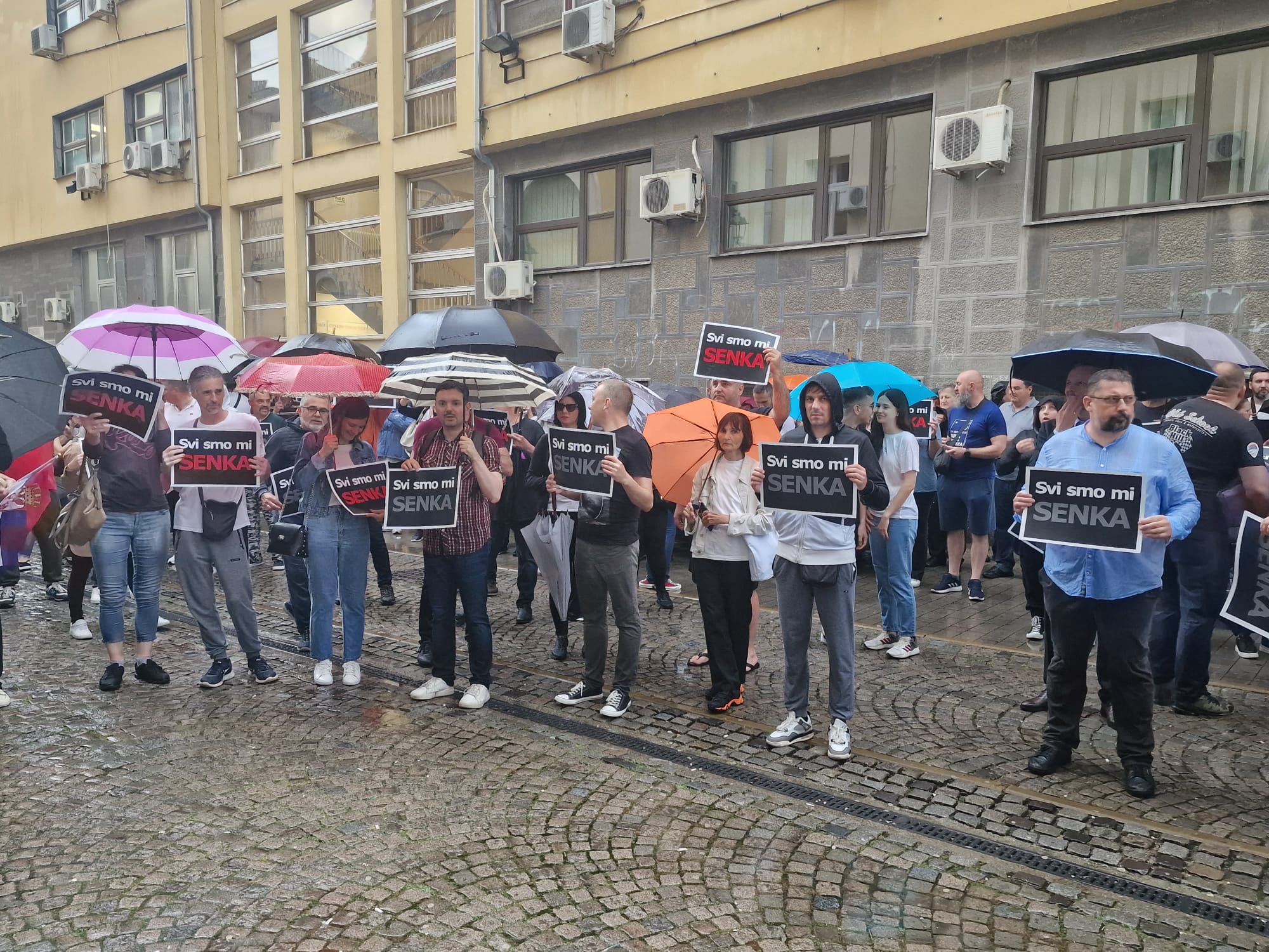 Prisutni građani nosili su transparente na kojima je pisalo „Svi smo mi Senka“ i u više navrata glasno skandirali „Vratite Senku“.