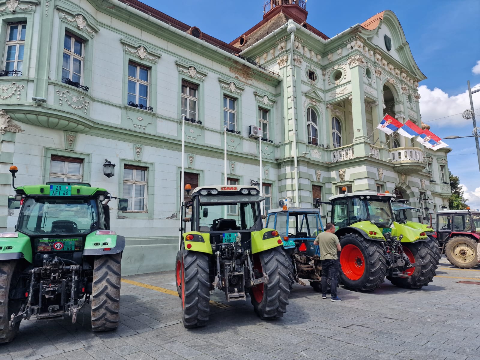 Zrenjaninski poljoprivrednici danas su parkirali svoje traktore ispred Gradske kuće.