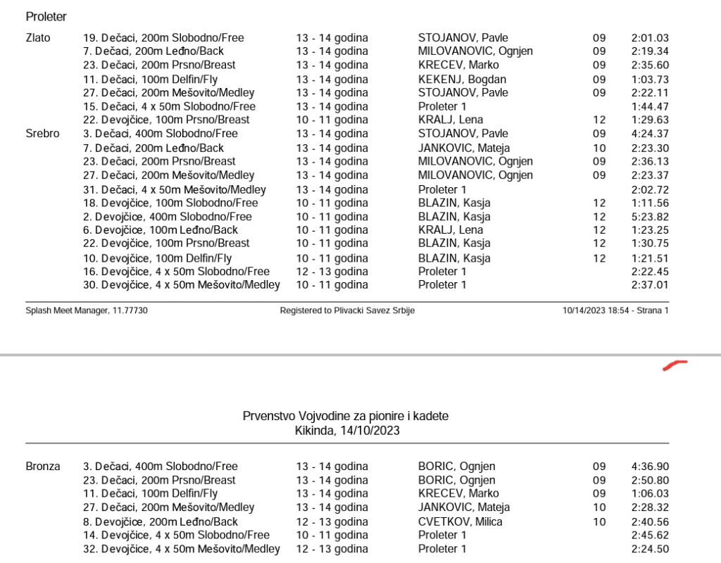 Sport – Proteklog vikenda Kikinda je bila domaćin Prvenstva Vojvodine za pionire, kadete, juniore i apsolutno. Ukupno je učestvovalo preko 330 takmičara, Proleter je nastupio sa 53 takmičara i osvojio ukupno 75 medalja.