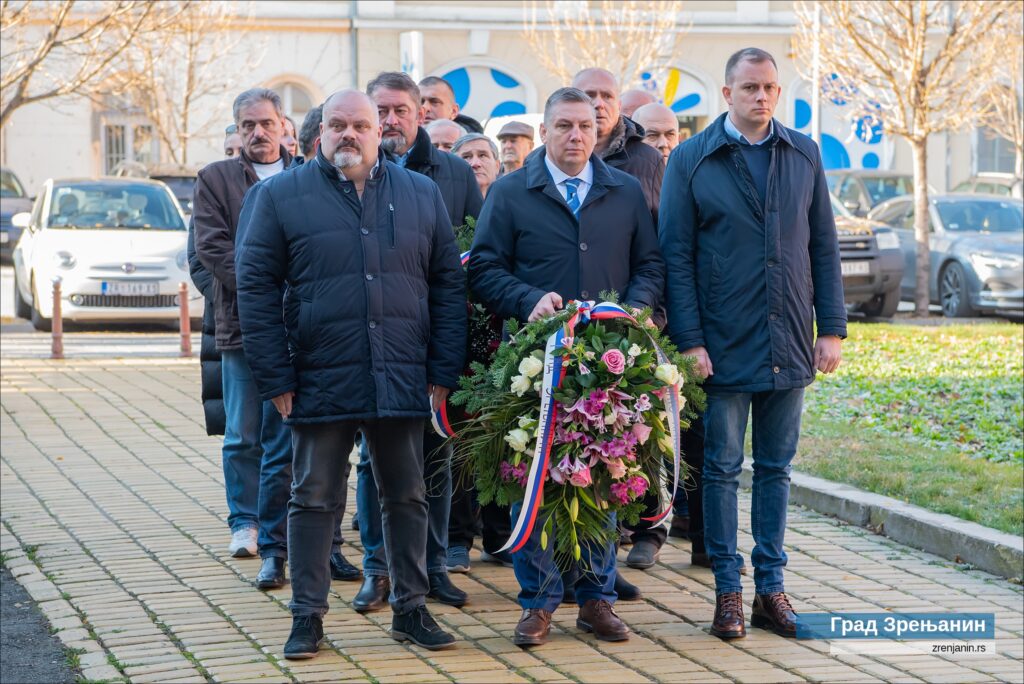 U ceremoniji polaganja venaca na spomen-obeležje poginulim sa teritorije Grada Zrenjanina u ratnim sukobima na teritoriji nekadašnje Jugoslavije, od 1991-99. godine učestvovale su delegacije Banatske brigade – Komande garnizona Zrenjanin, koju je predvodio potpukovnik Nikola Fatić, Srednjobanatskog okruga, s načelnikom Predragom Rađenovićem, Grada Zrenjanina, u kojoj su bili zamenik gradonačelnika Saša Santovac, predsednik Skupštine grada Čedomir Janjić i pomoćnik gradonačelnika Rajko Kapelan, kao i delegacije Udruženja vojnih penzionera, Saveza udruženja boraca Narodnooslobodilačkog rata, Organizacije rezervnih vojnih starešina Zrenjanin, Udruženja “Srpski ratni veterani”, Udruženja ratnih vojnih invalida i porodica poginulih boraca grada Zrenjanina, Udruženja ratnih vojnih invalida grada Zrenjanina, i članovi porodica poginulih boraca.