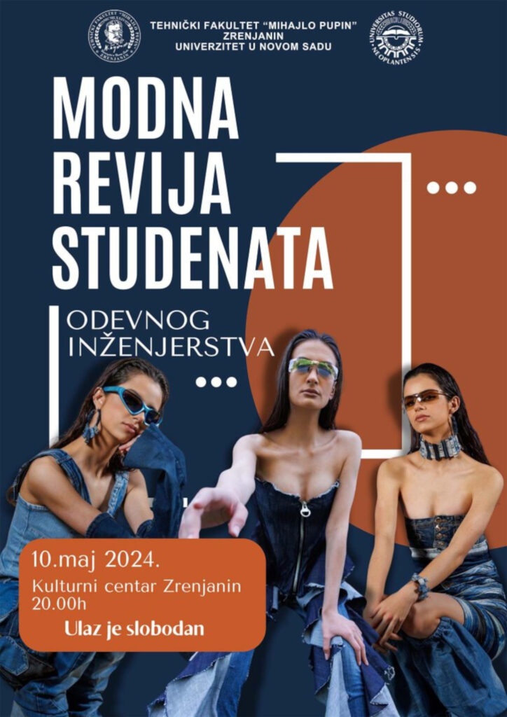 Zrenajnin- Modna revija studenata studijskog programa Odevnog inženjerstva Tehničkog fakulteta “Mihajlo Pupin” biće održana u petak, 10. maja u Kulturnom centru Zrenjanina. Revija počinje u 20 časova.