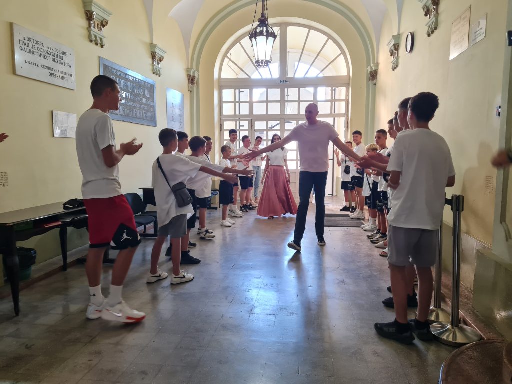 Dejan je došao u pratnji svog brata Bojana, koji vodi KK „Proleter“, a u špaliru dobrodošlice bila su deca učesnici Sportskog kampa za mlade iz dijaspore i Kosova i Metohije.
