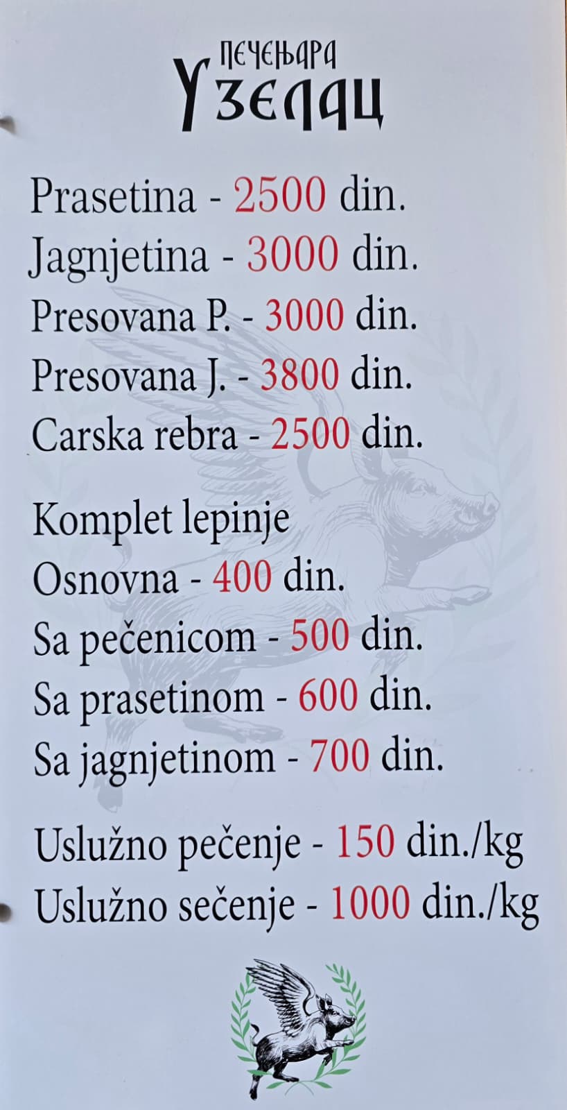 U pečenjari UZELAC svakog dana tačno u podne čeka vas vruća prasetina i jagnjetina, kao i komplet lepinje!