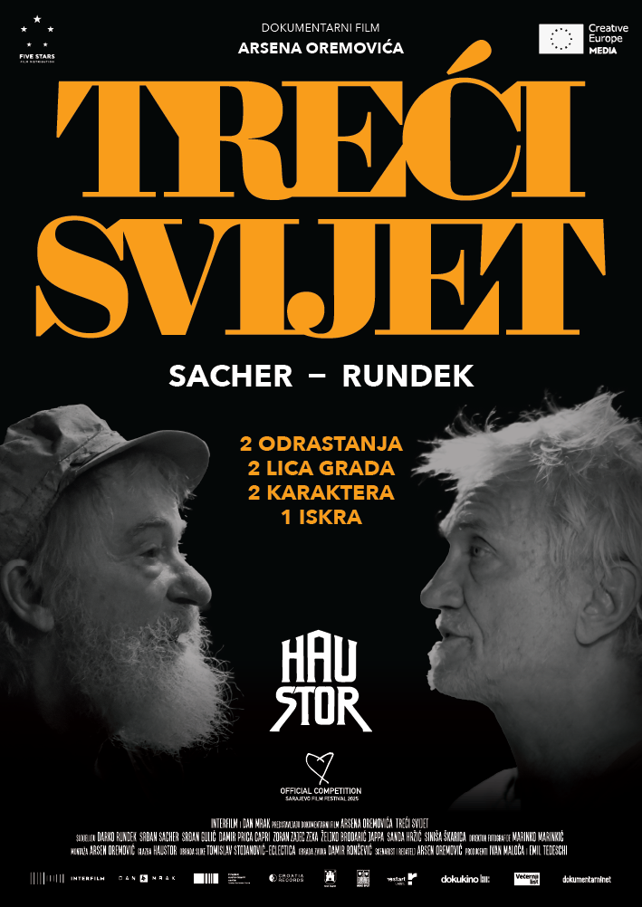 „Treći svijet”, režisera Arsena Oremovića, je više od dokumentarnog filma o „Haustoru” – legendarnom zagrebačkom bendu koji je oblikovao muzičku scenu bivše Jugoslavije. To je priča o dve kreativne suprotnosti: Darku Rundeku i Srđanu Saheru. Kroz prodorne opservacije, novo okupljanje u studiju i živopisnu arhivu, film otkriva kako je, u jednom trenutku, zajednička sklonost magiji svakodnevice spojila ta dva kreativna sveta da stvore treći – navodi se u sinopsisu.