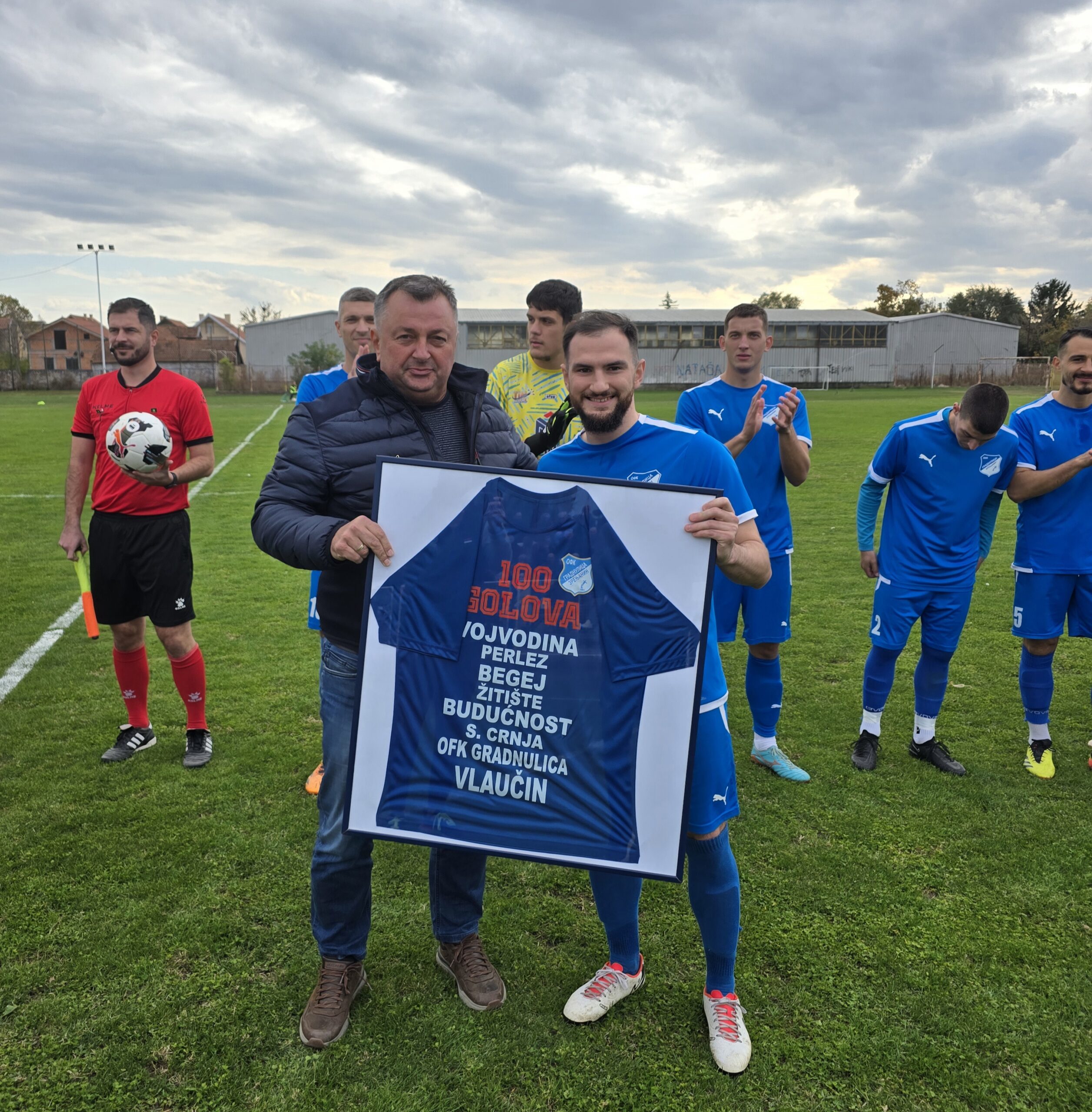Pre početka utakmice predsednik FK „Gradnulica“ Igor Toškov uručio je uramljeni dres Goranu Vlaučinu za postignuti stoti gol u karijeri.