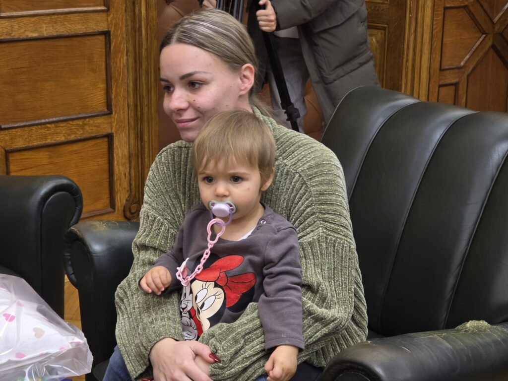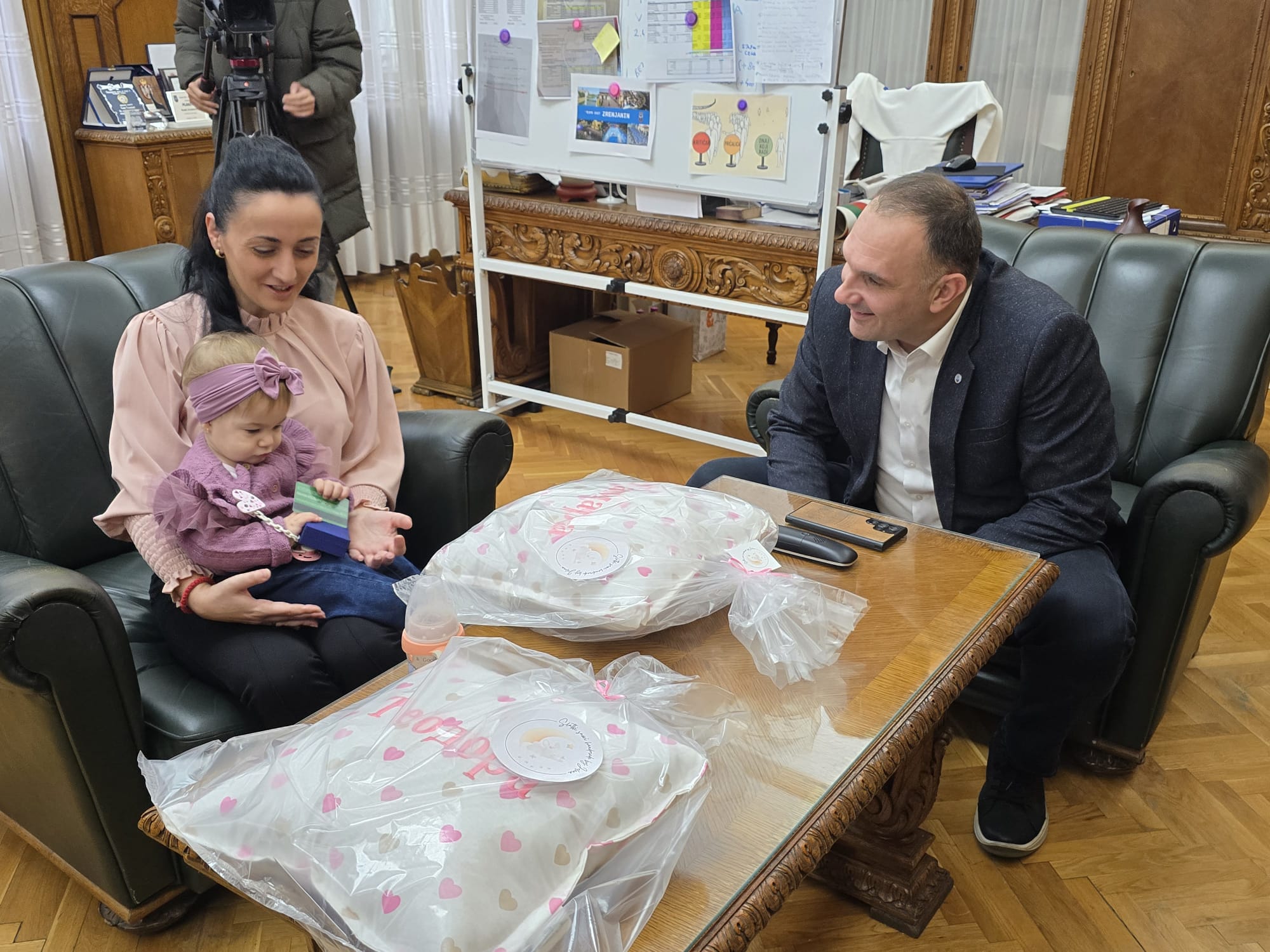 „Tamara je moje treće dete, rođena je prošle godine na Dan grada Zrenjanina. Dobili smo poziv od gradonačelnika da se danas javimo ovde, lepo nas je ugostio i načinio jako lep gest. Pokloni su prelepi i probeli smo jedno prelepo pre podne u njegovom kabinetu“ rekla je Srbislava Tumo.