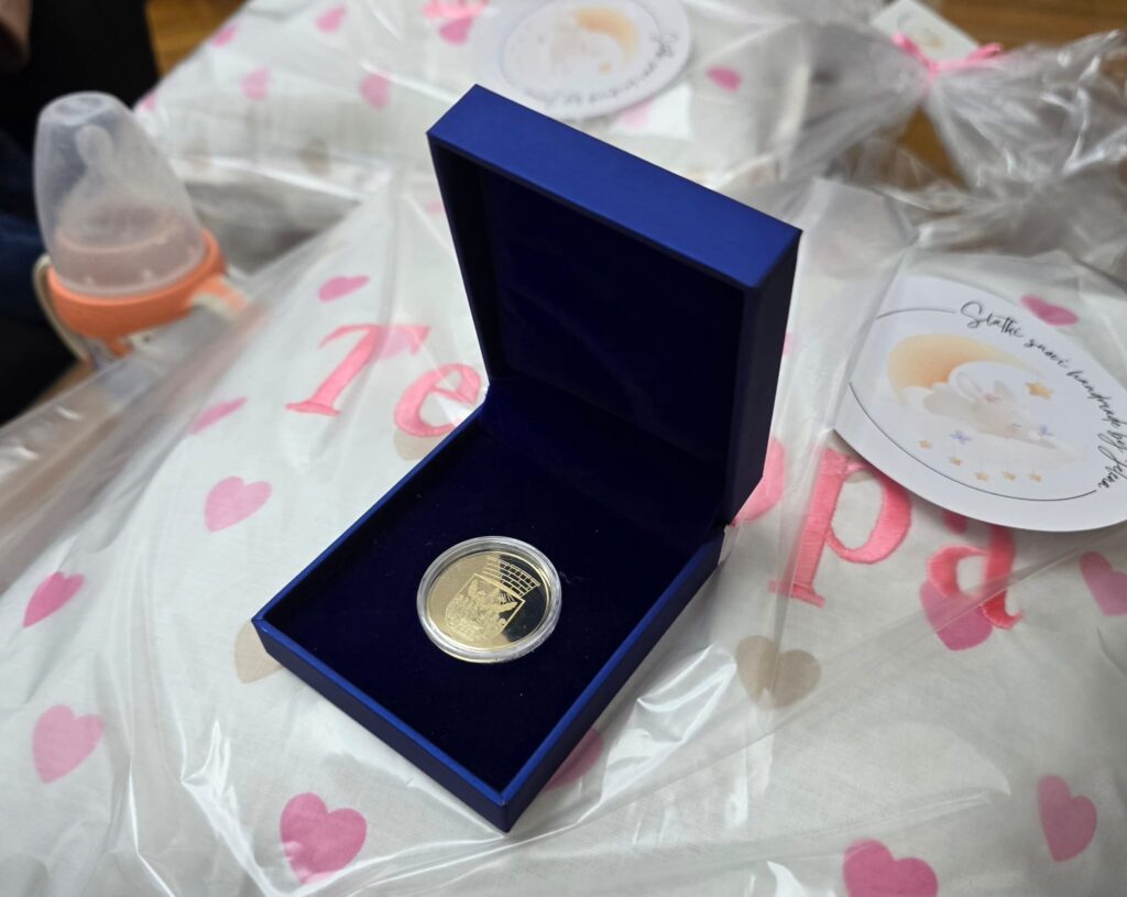Osim zlatnika, gradonačelnik je našim malim sugrađanima, koji su juče proslavili prvi rođendan, uručio i rođendanske čestitke, auto sedišta i jastučiće sa njihovim imenima.
