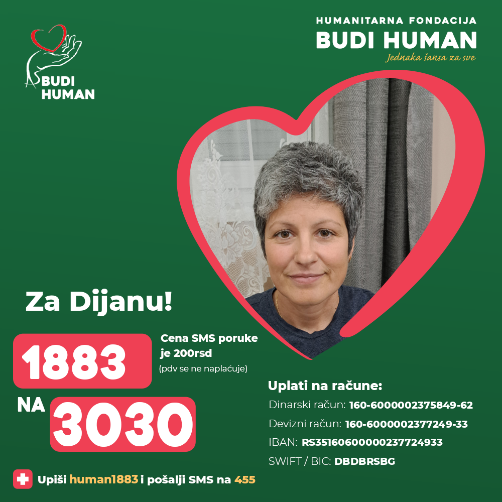 Humanitarna fondacija BUDI HUMAN Aleksandar Šapić prikuplja novčana sredstva za Dijanu Maljković (1976).