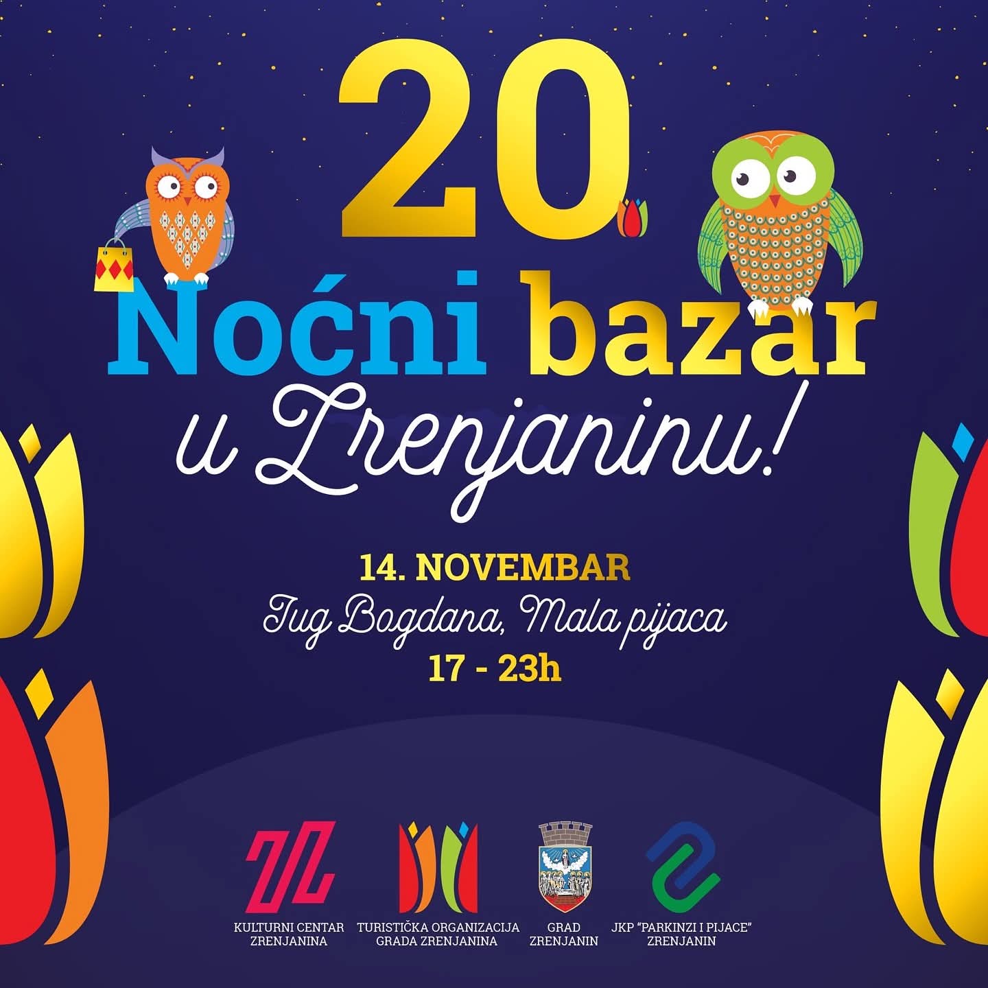 Dvadeseti po redu Noćni bazar u Zrenjaninu biće održan u petak, 14. novembra na Maloj pijaci u Jug Bogdana u periodu od 17 do 23 časa.