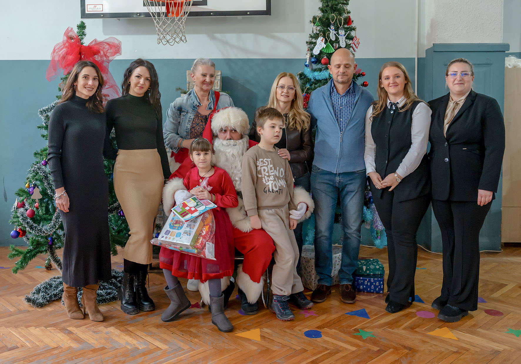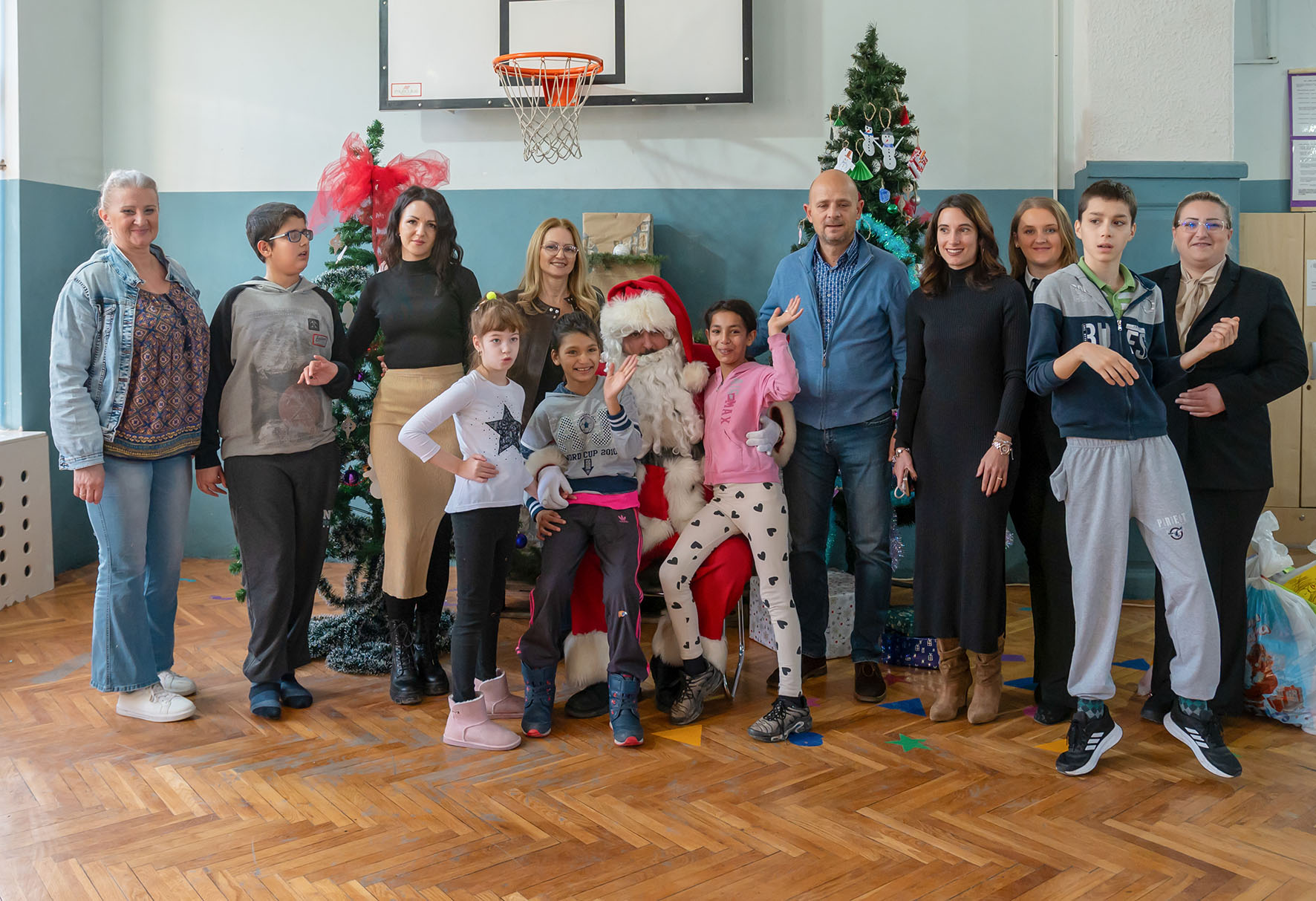 Centralni trenutak ove humane akcije bilo je uručenje poklona u školi, u svečanoj atmosferi ispunjenoj smehom i radošću. Događaju su prisustvovali direktor lanca snebdevanja kompanije Gomex, Neven Marčesku, rukovodioci službe marketinga i ljudskih resursa , Tamara Žigić i Dubravka Mišić Kaluđerski kao i koleginice iz ljudskih resursa, a posebnu pažnju je privukao specijalni gost – Deda Mraz, koji je dodatno ulepšao ovaj dan.