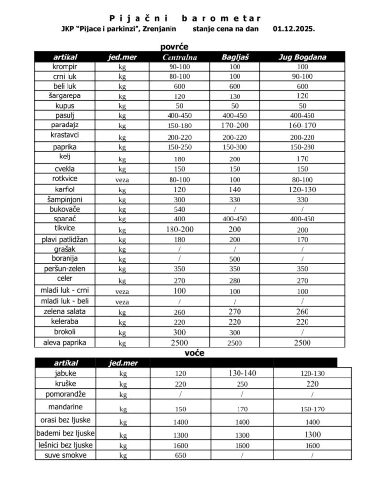 ZRENJANIN – Ponuda voća, povrća mesa i mlečnih proizboda na zrenjaninskim pijacama je i ove nedelje raznovrsna.