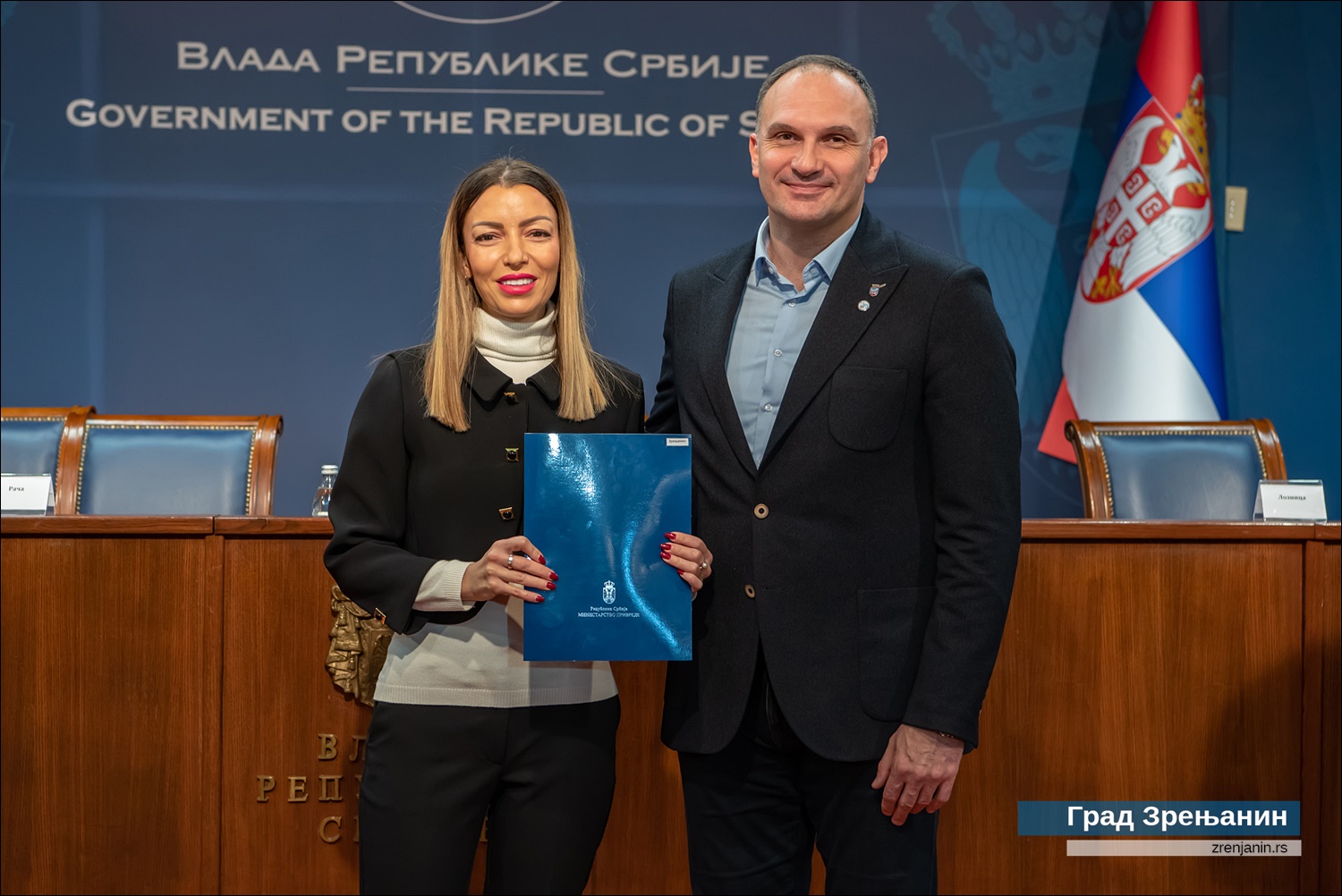 Potpredsednica Vlade Republike Srbije i ministarka privrede Adrijana Mesarović potpisala je danas ugovore ukupne vrednosti milijardu 309 miliona dinara, u okviru Programa podrške razvoju poslovne infrastrukture za 2025. godinu, sa predstavnicima 12 lokalnih samouprava, među kojima je i Grad Zrenjanin.