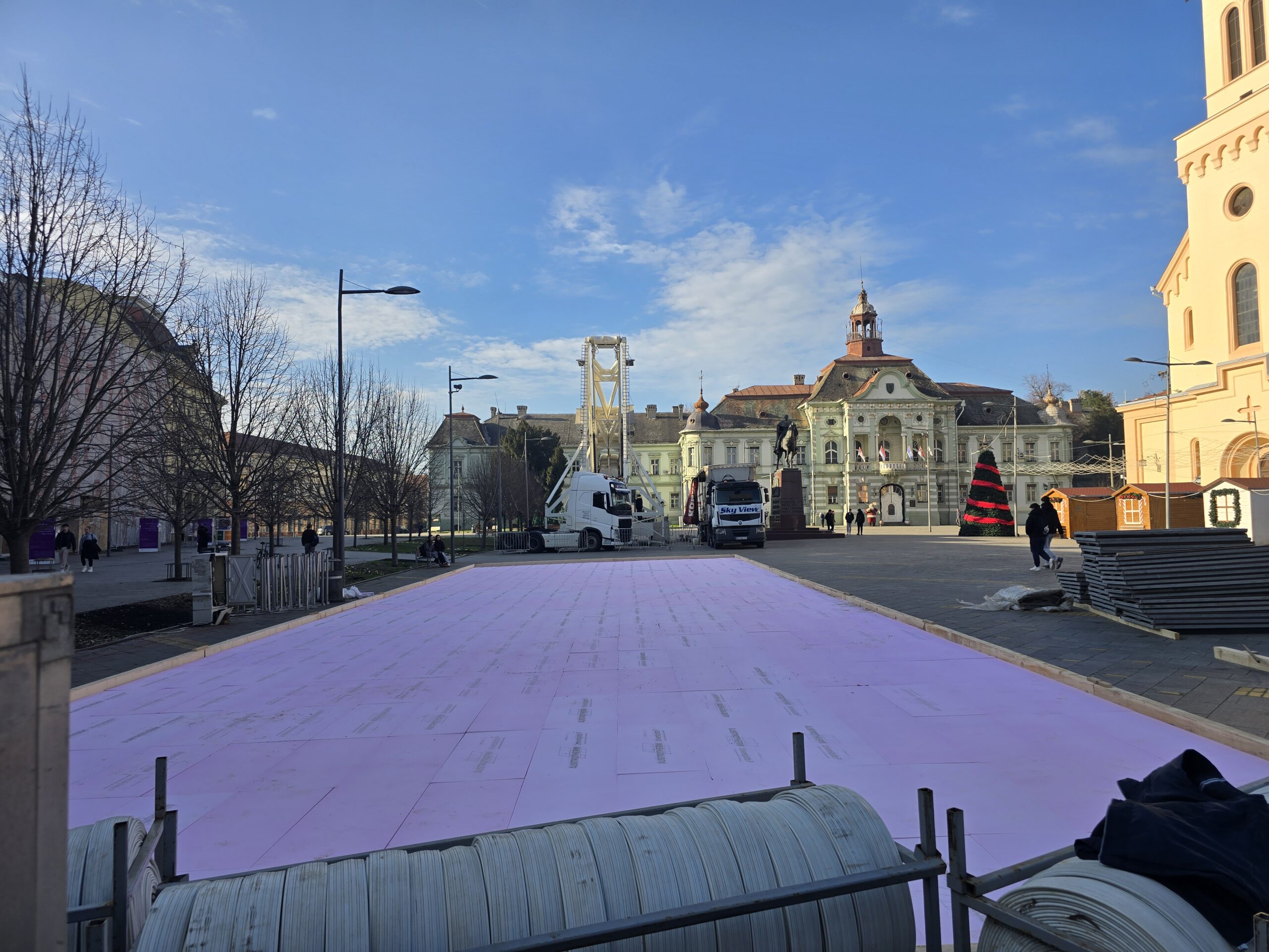Zrenjanin- Trg slobode u narednim danima dobiće klizalište i panoramski točak. Radovi u centru su uveliko u toku, a izvođači su nam saopštili da će sve biti uskoro gotovo.