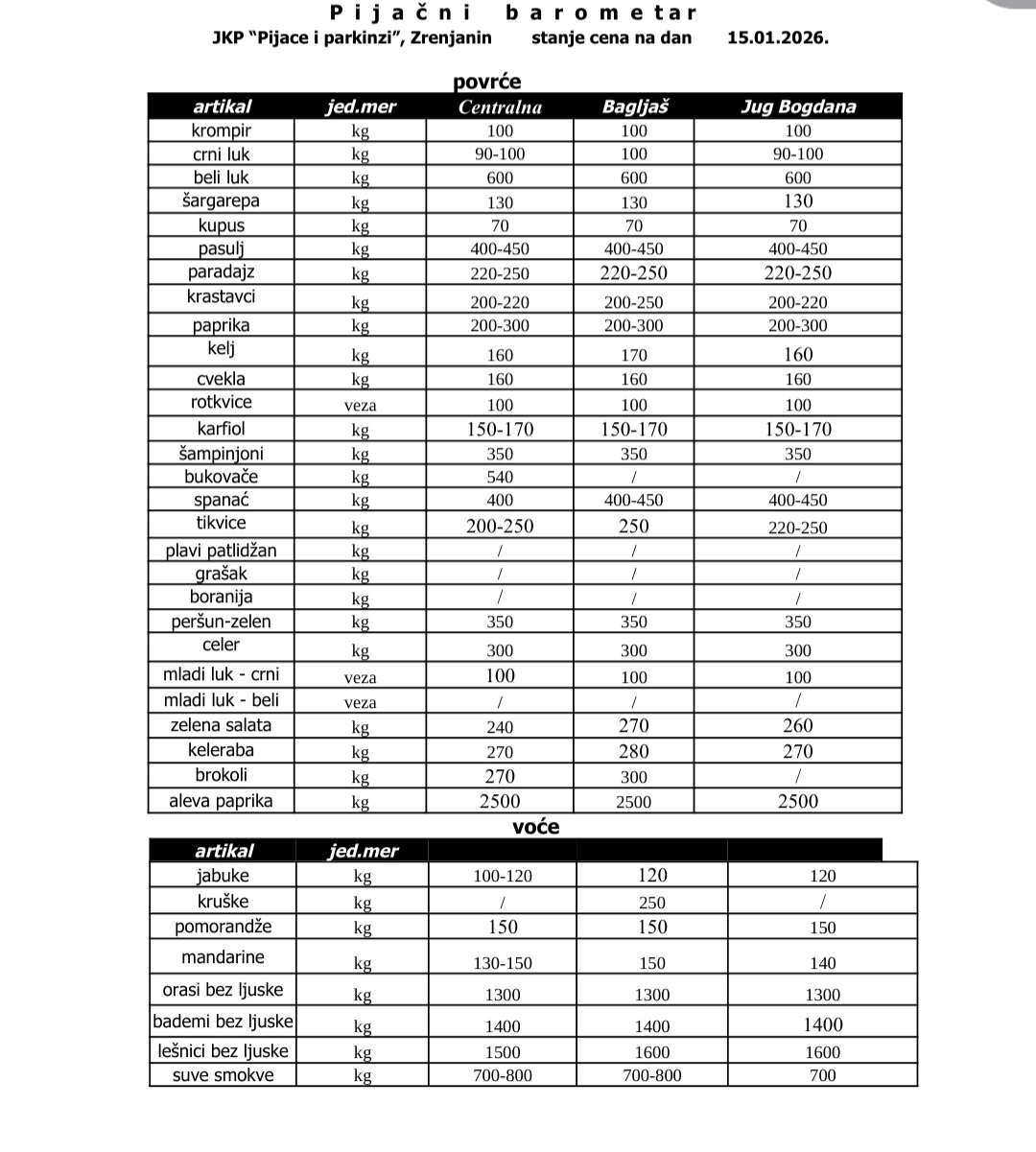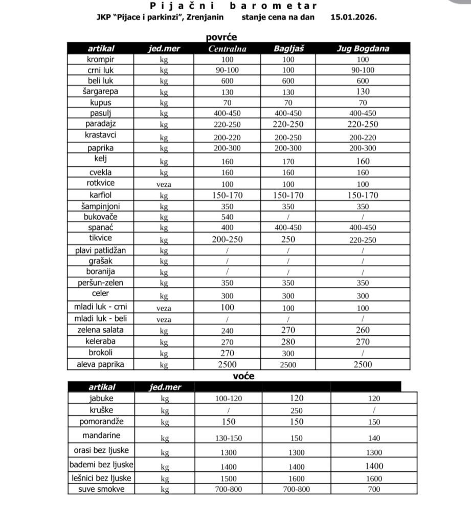 Pogledajte cene na zrenjaninskim pijacama: