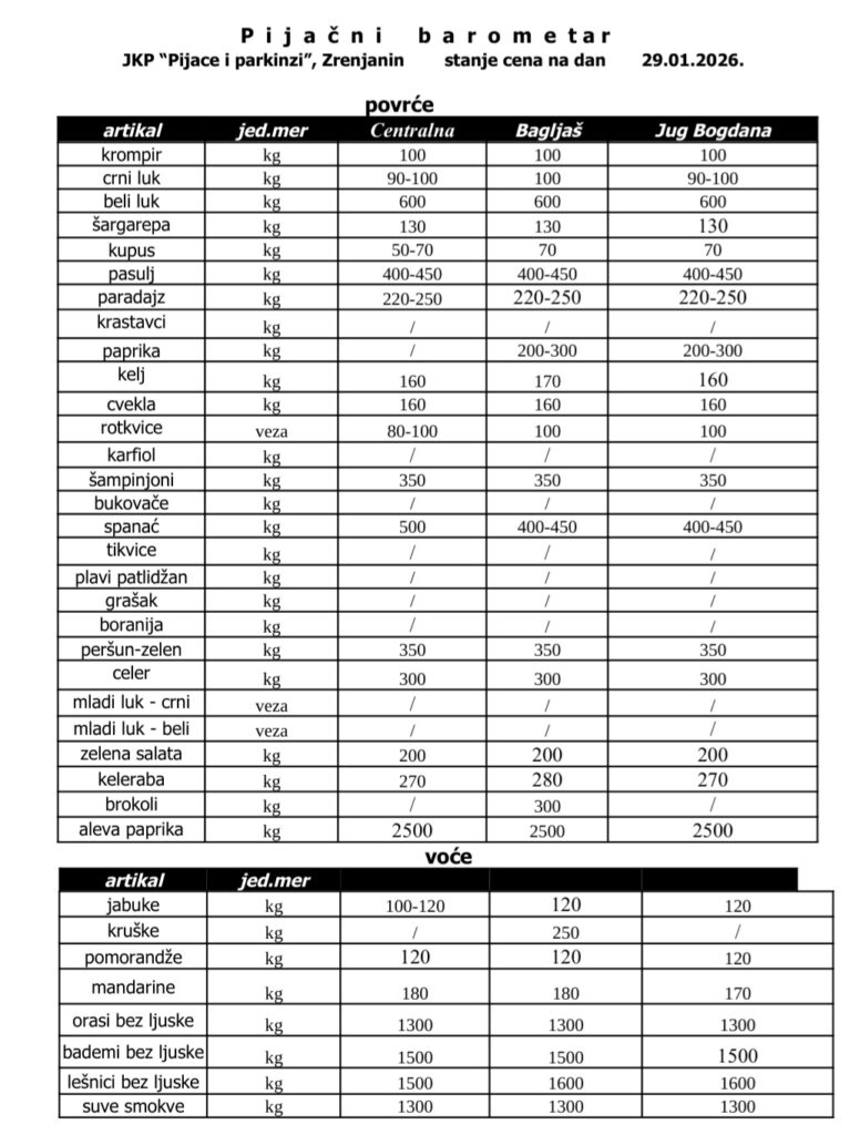 Pogledajte cene na zrenjaninskim pijacama