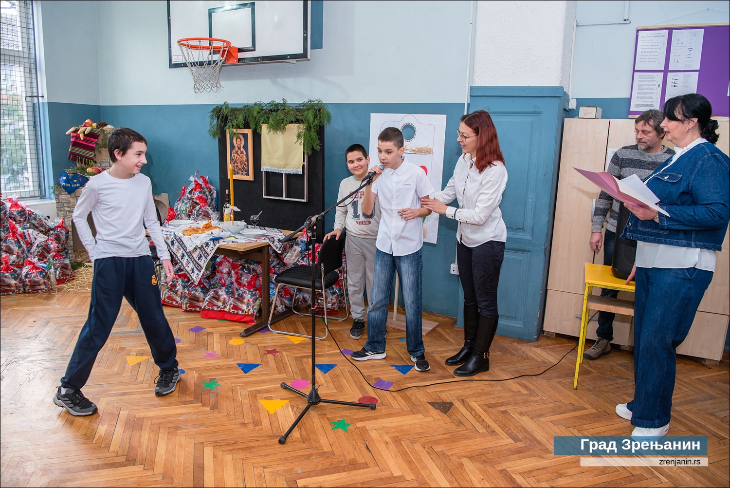 Zrenjanin- Povodom obeležavanja školske slave – Svetog Save, danas je u gotovo svim školama i vrtićima na području Grada Zrenjanina organizovan prigodan program i osveštavan slavski kolač.