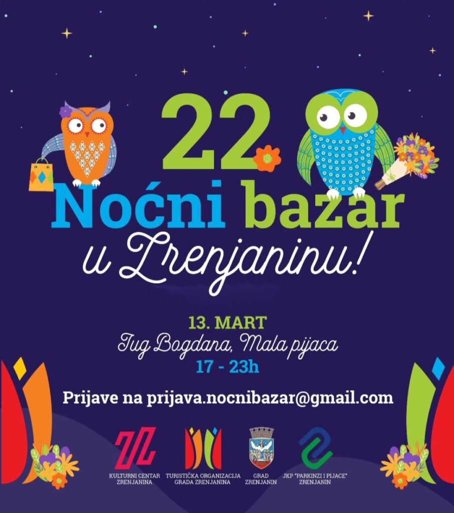 Zrenjanin- Danas, 20. februara, počinju prijave za prvi u ovoj godini, a 22. po redu Noćni bazar u Zrenjaninu, koji će biti održan 13. marta od 17 do 23h!