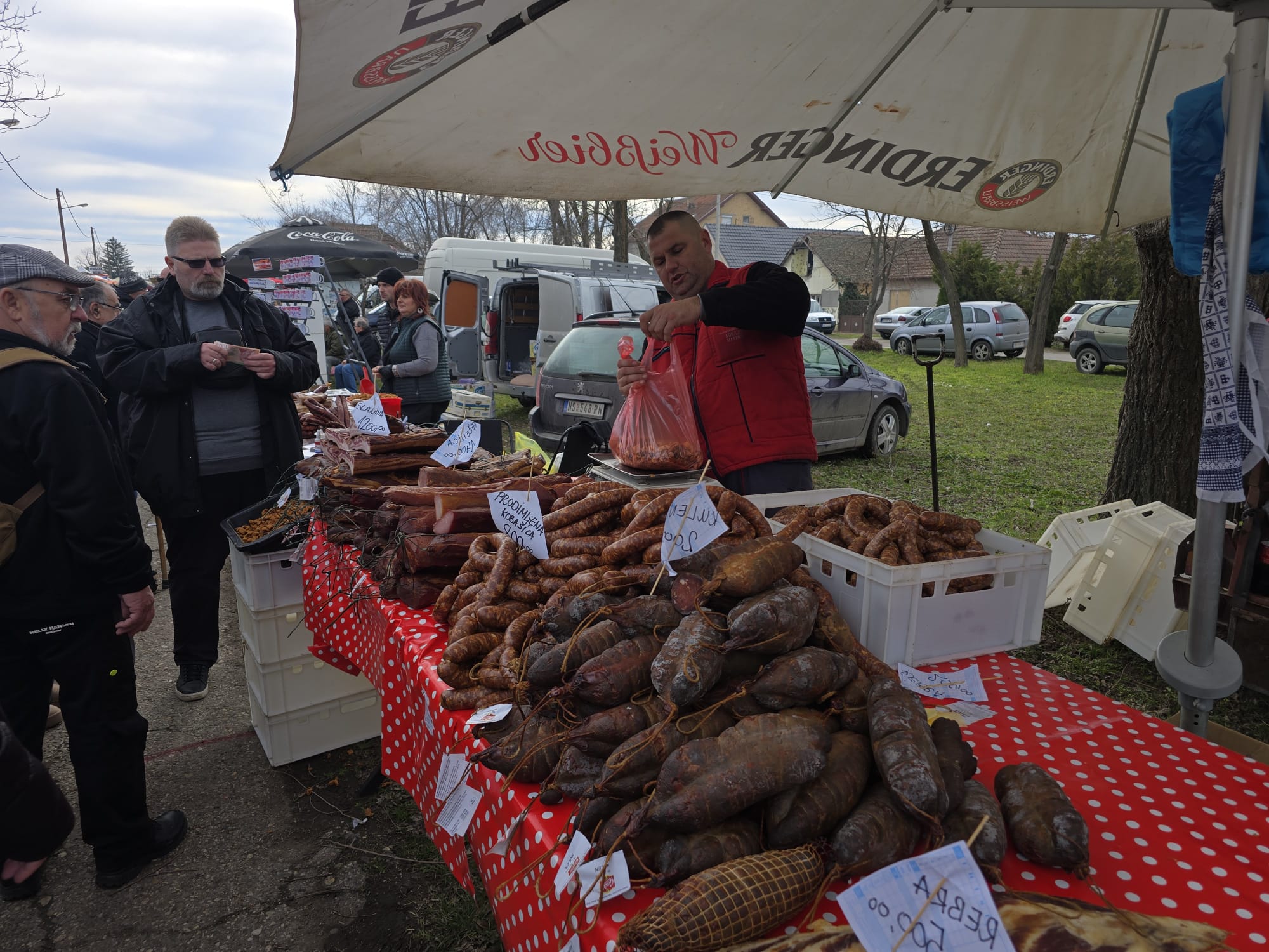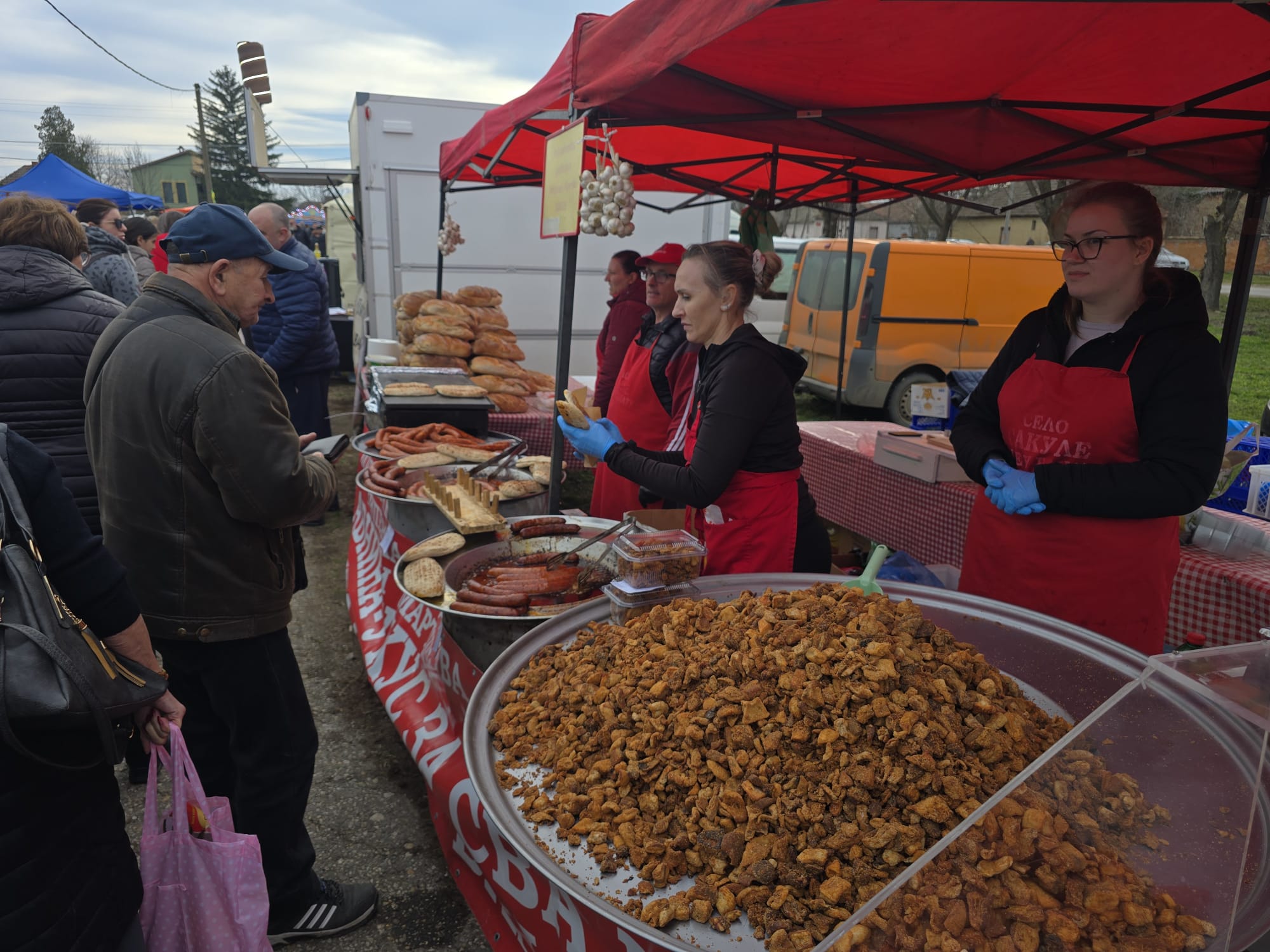 Veliki broj posetilaca danas ima priliku da na štandovima kupi langoš, pečene kobasice i čvarke, suhomesnate proizvode, rakiju i domaće kolače.