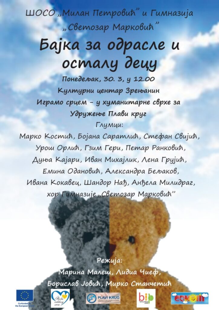 Zrenjanin- Humanitarna predstava „Bajka za odrasle i ostalu decu“,  biće izvedena u Kulturnom centru u ponedeljak, 30. mart u 12 sati.