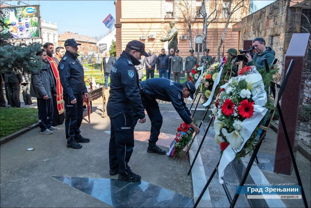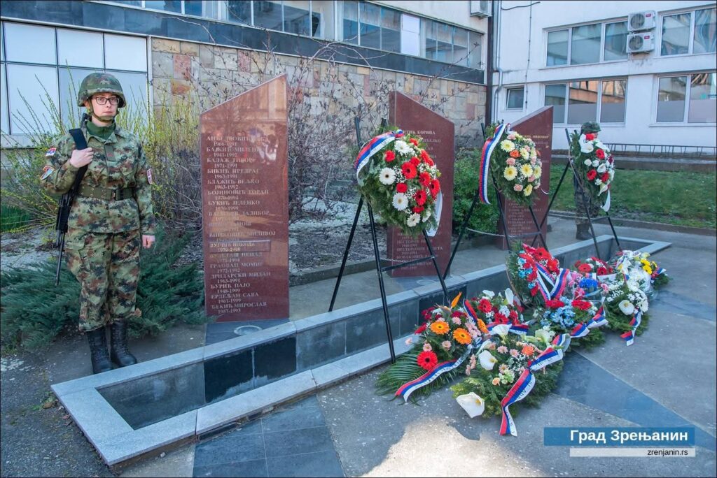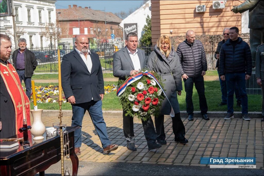 Vence na spomenik poginulim pripadnicima vojske, policije i dobrovoljcima iz našeg grada položili su zamenik gradonačelnika Saša Santovac i predsednik Skupštine grada Čedomir Janjić, kao i Snežana Vučurević, pomoćnica gradonačelnika, u ime Grada Zrenjanina. Vence su položili i predstavnici garnizona Vojske Srbije – Komande banatske brigade u Zrenjaninu, koje je predvodio major Nebojša Jovanović, delegacija Srednjobanatskog upravnog okruga, Policijske uprave Zrenjanin, kao i predstavnici Udruženja vojnih penzionera, Udruženja ratnih vojnih invalida i porodica poginulih boraca Zrenjanin, Udruženja ratnih vojnih invalida Zrenjanin, SUBNOR-a Zrenjanin, Udruženja veterana Posebnih jedinica policije, Udruženja veterana 63. padobranske brigade – Banat, Organizacije rezervnih vojnih starešina Zrenjanin, Udruženja Srpski ratni veterani Zrenjanin, Udruženja penzionera Policijske uprave Zrenjanin, predstavnici Gradskog odbora Srpske napredne stranke u Zrenjaninu i delegacija Pokreta Srpska Vojvodina.