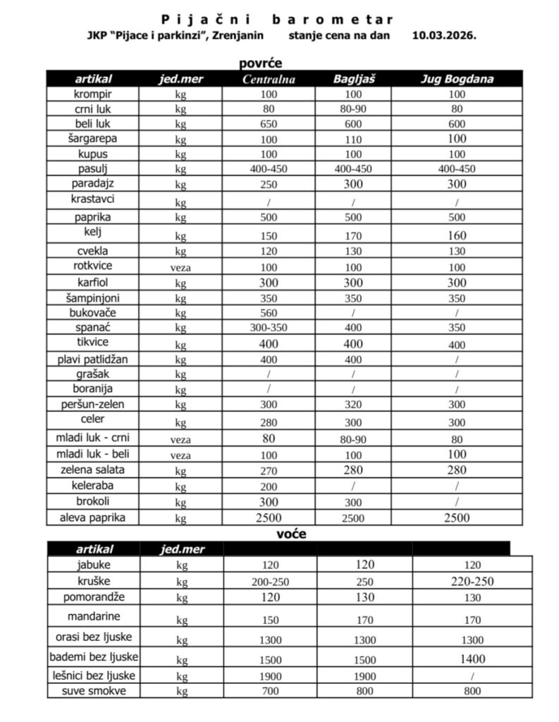 Zrenjanin- Pogledajte cene voća, povrća, mesa i mlečnih proizvoda na zrenjaninskim pijacama: