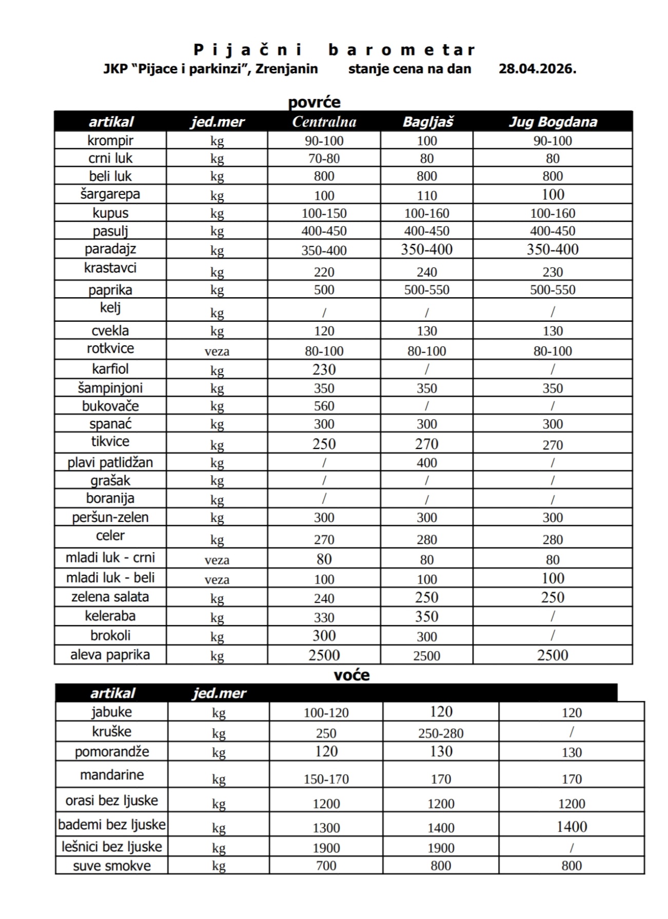 Pogledajte cene voća, povrća i mlečnih proizvoda na zrenjaninskim pijacama: