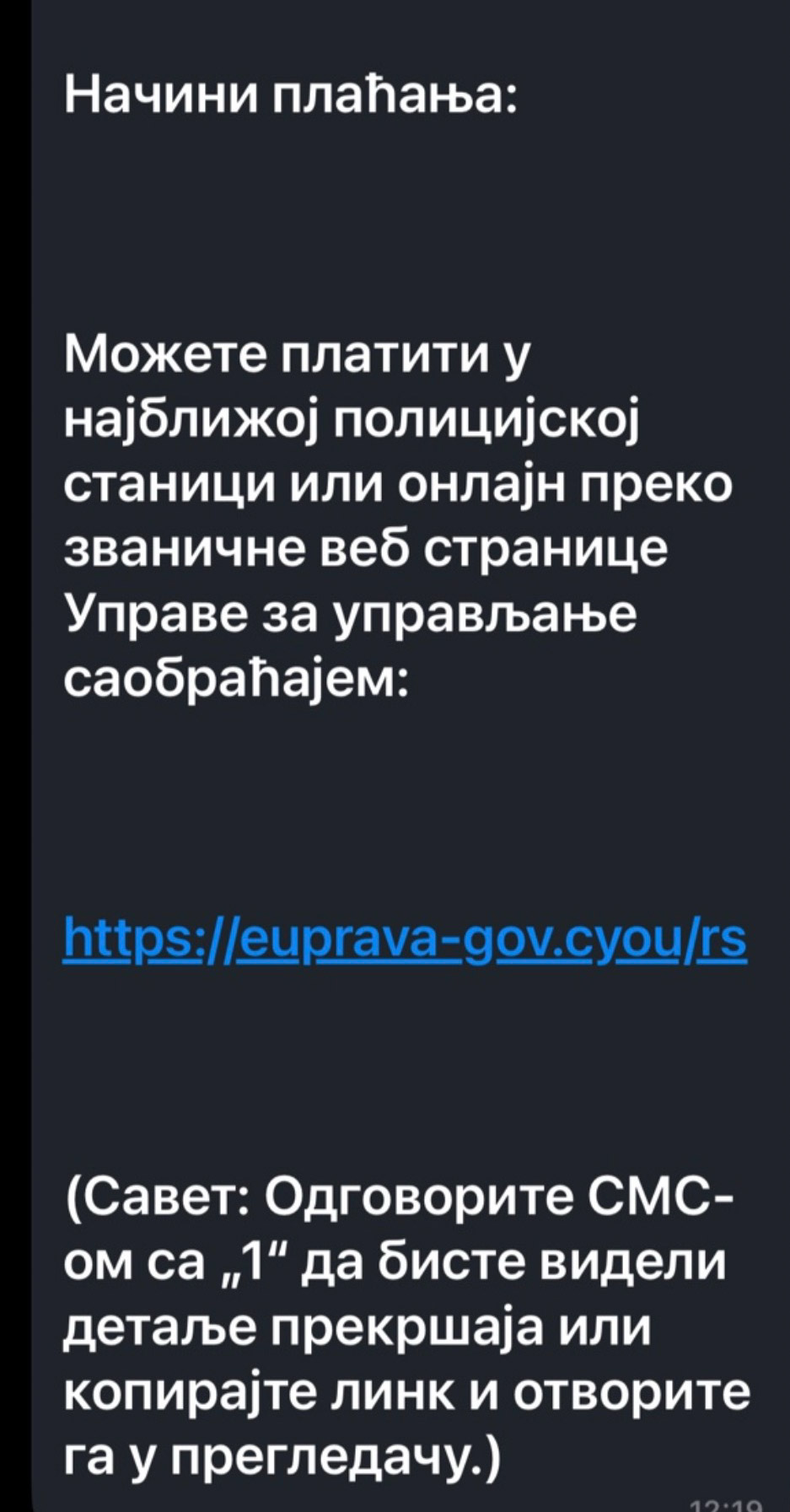 Pogledajte kako izgledaju lažne sms poruke: