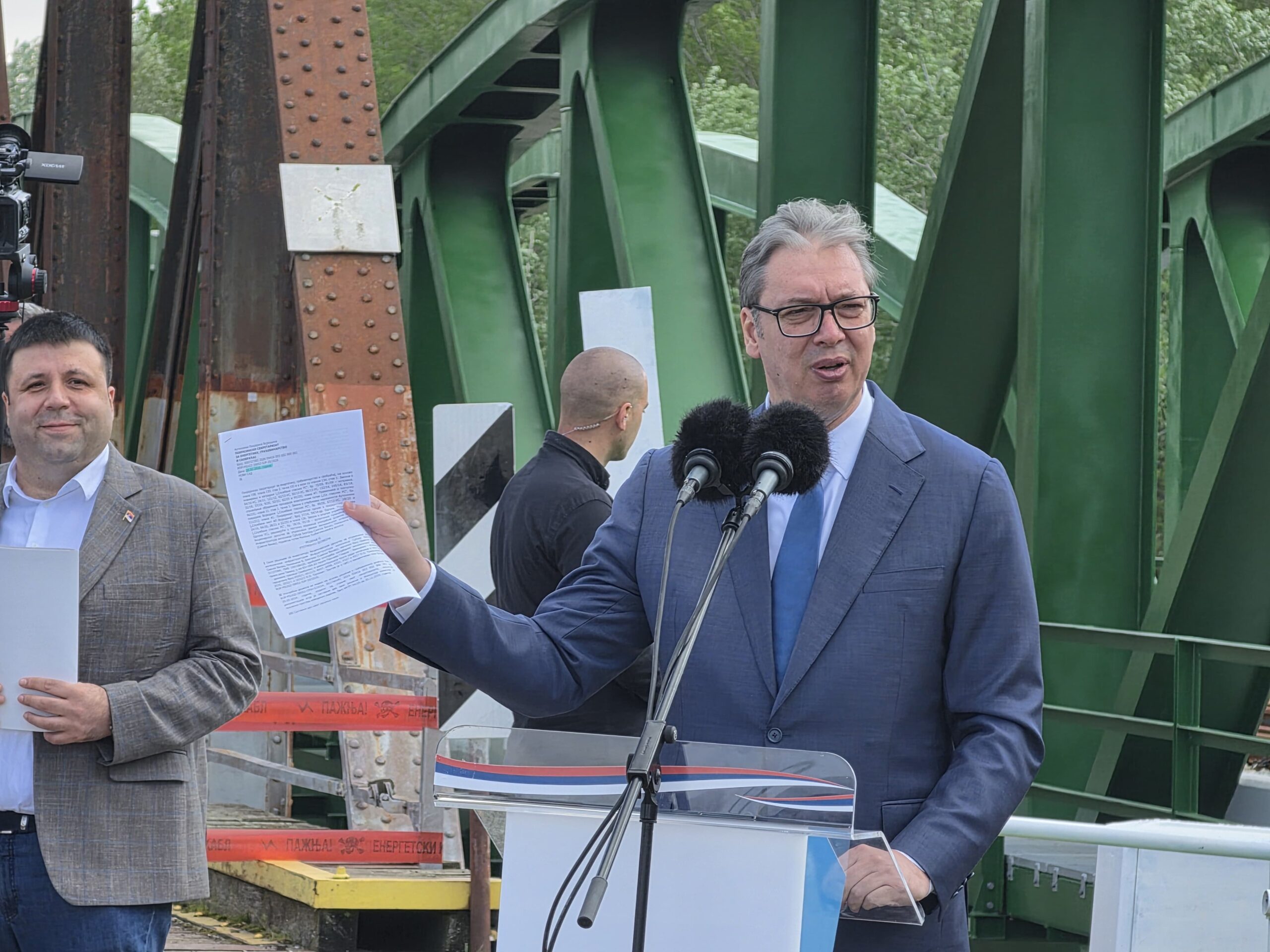 Predsednik Aleksandar Vučić pokazao je novinarima upotrebnu dozvolu za most koja je izdata pre mesec dana.